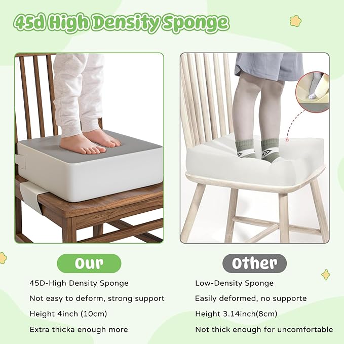 - 【High-Quality Booster Seat】Our toddler booster seat for kitchen chair is made of 45D high-density sponge, which is not easy to deform, has stronger support, Long term use will not leave dents,and is more comfortable for toddlers to use.