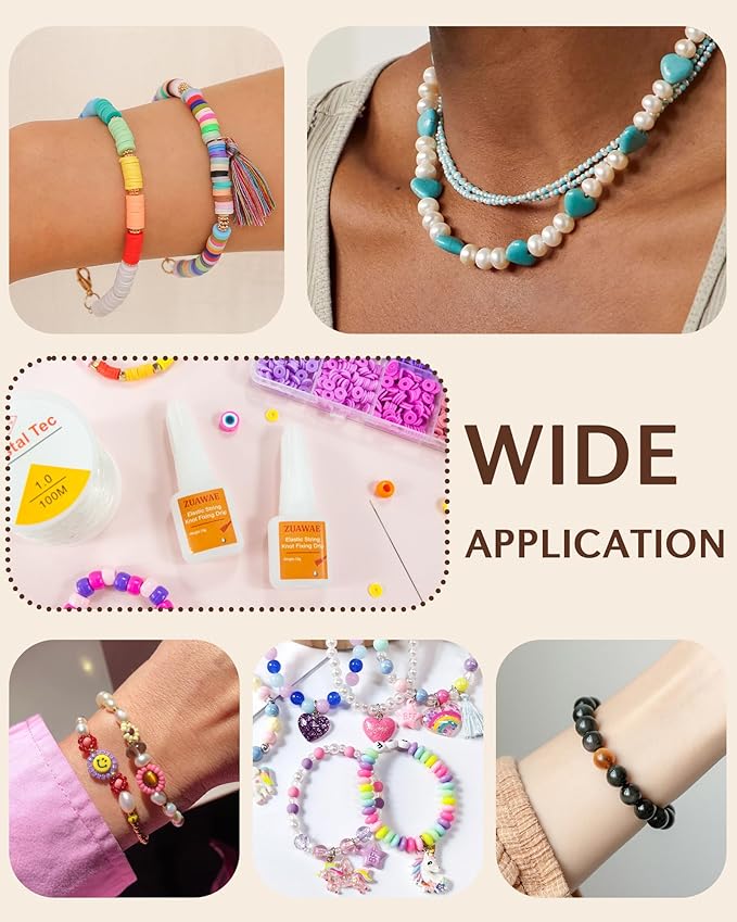 ZUAWAE Jewelry Glue for Elastic String, Bracelet Glues with 1mm Elastic String for Bracelets to Clay Beads Bracelet Making Kit, Jewelrys Fixing Kit, Jewelry Making Supplies