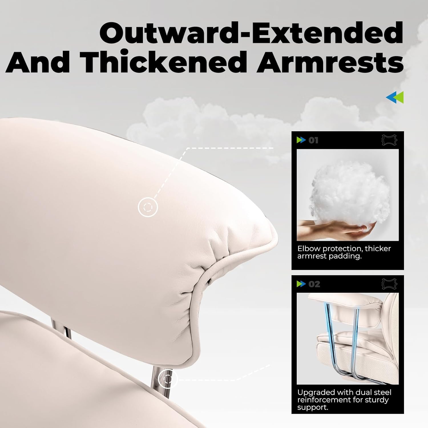- 【Ergonomic Full-Body Design】Specifically designed for pressure dispersion and body support, the backrest features 3D wrapping lumbar support with dual-layered high-density foam and high-loft fiber, conforming to the curves of your neck, shoulders, and back. The oversized adjustable lumbar pillow provides personalized support, delivering a sofa-like embracing comfort.