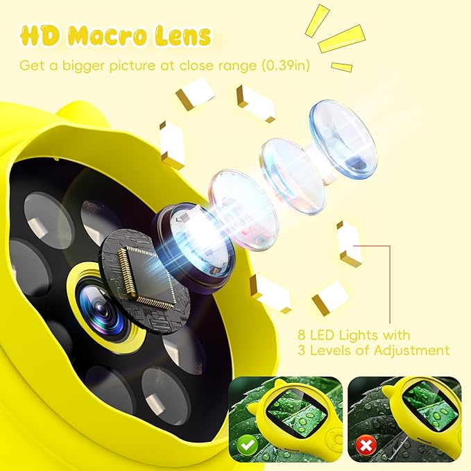 - Digital Microscope for Kids: equipped with 200x magnification and 4x zoom adjustment knob, this microscope provides exceptional clarity, allowing children to take a closer look at spots on ladybugs, bee wings, plant veins, intricate patterns on coins and fibers in tissues, embarking on an exciting journey of microscopic exploration