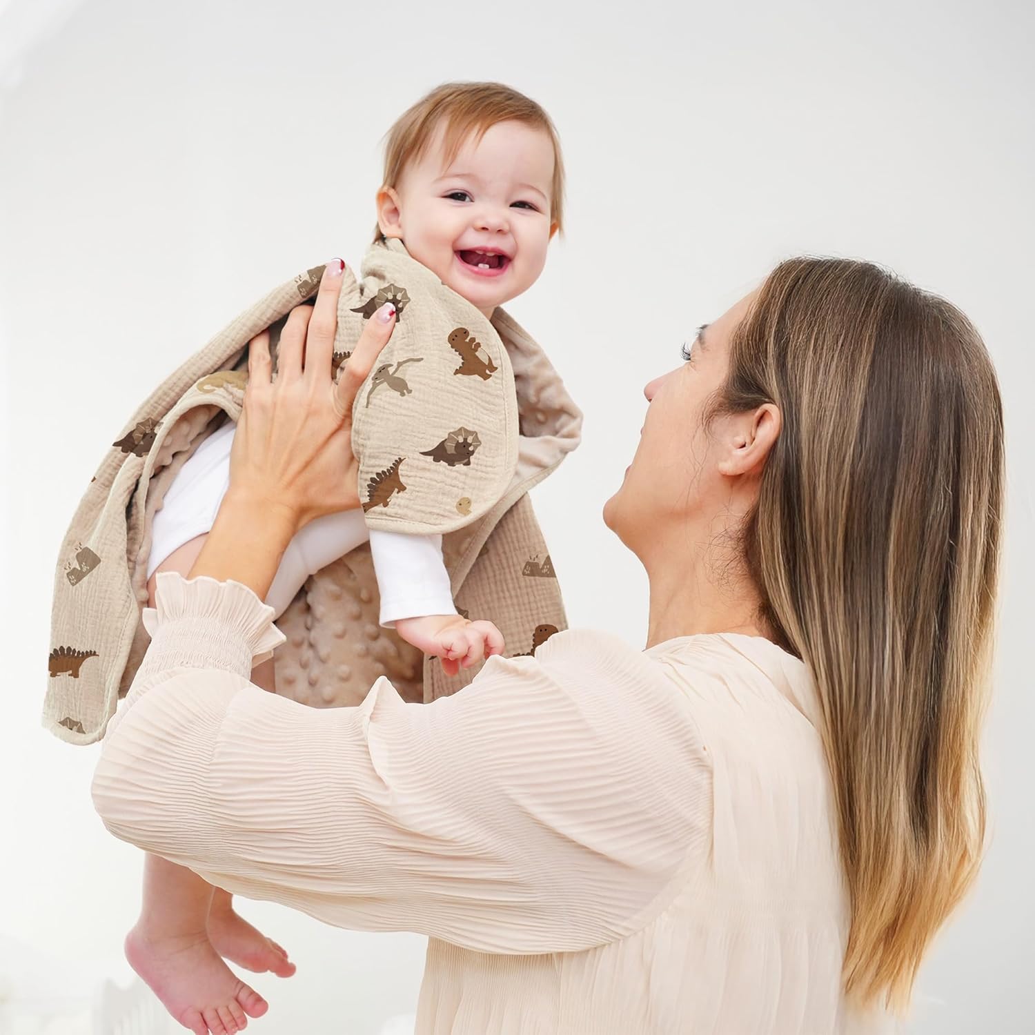 Susurration Baby Blanket for Unisex Boys Girls, Soft Nursery Minky Blanket with Muslin Cotton Front and Dotted Fleece Back, Receiving Blanket for Baby Newborn Infant, 30x40inch (Dinosaur)