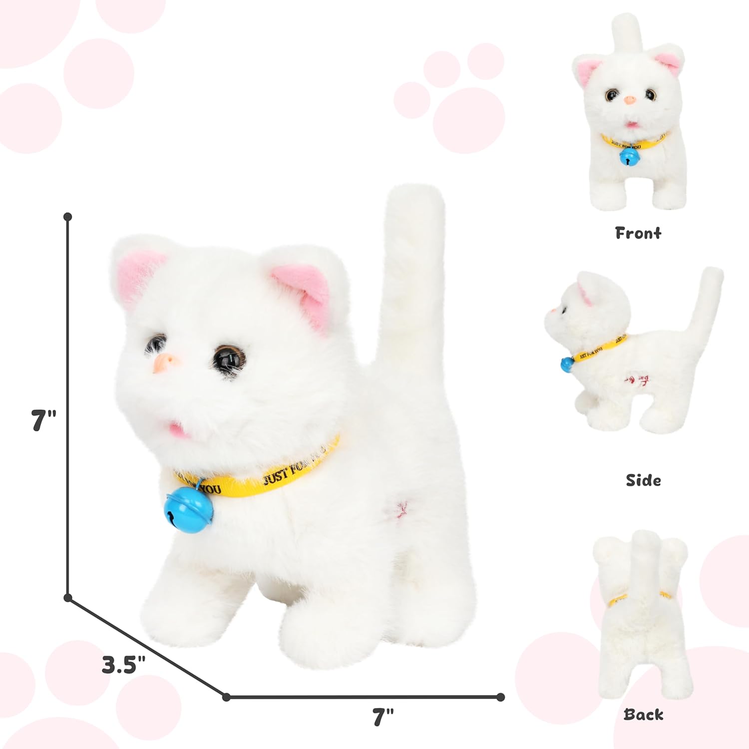 - SINGING AND WALKING: This is a cute white kitty, it features with singing and walking. It walks forward while making sounds.This walking plush will capture every child’s heart, adding a touch of cuteness to their toy collection.