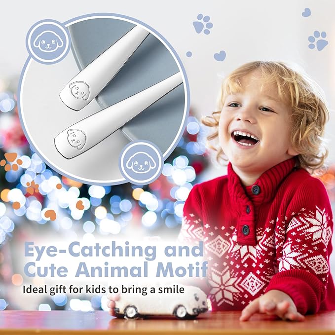- ENGAGING MEALTIMES: Our kids silverware set embossed with a mirror-polished finish and adorable animal motifs.Your child will be excited to dine with a pup on the fork, turning mealtime into a fun and engaging experience
