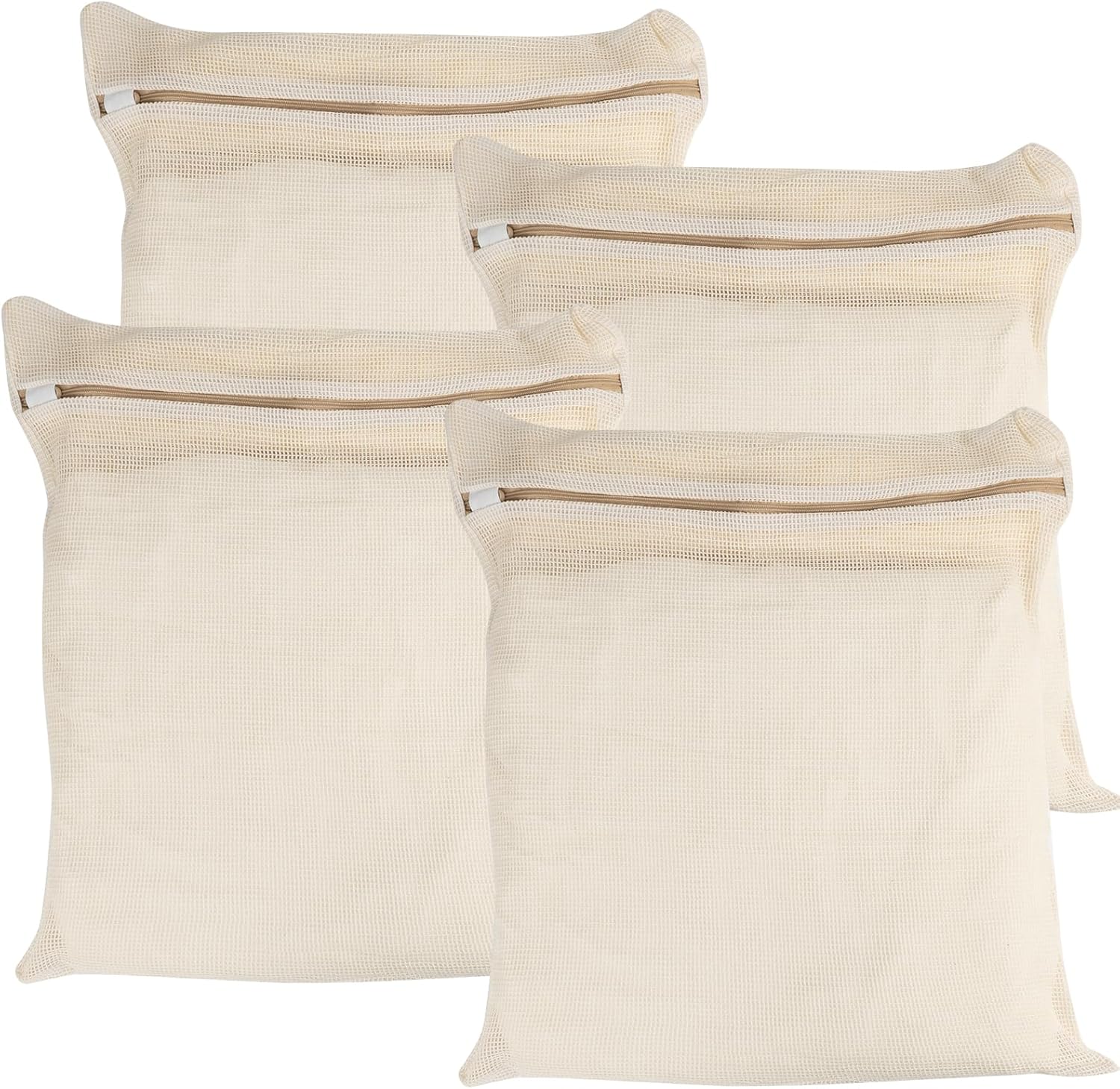 - 【 Packaging List 】4 PIECES COTTON MESH ZIPPERED LAUNDRY BAGS, LARGE AND STURDY: Our 14.96-inch x 17.71-inch laundry bags are made of pure cotton for long-lasting use!