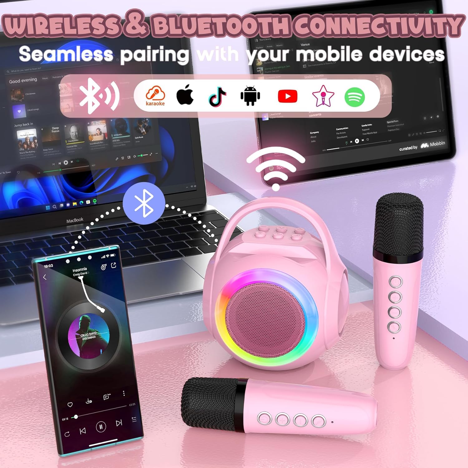 Hockvill Mini Karaoke Machine for Kids with Microphone, Bluetooth Toddler Karaoke Toy with LED Lights, Rechargeable Portable Speaker for Girls & Boys Ages 3-10, Children’s Day & Birthday Gift Ideas