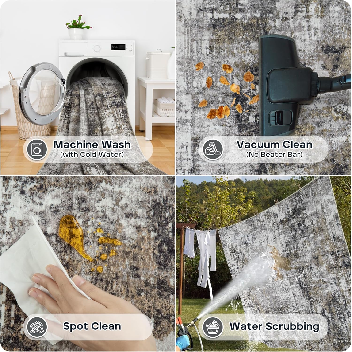 - Easy Maintenance: Keep your space fresh and clean with minimal effort. Our modern 6x9 area rugs are machine washable, spot-cleanable, and vacuum-friendly, making maintenance a breeze. Use a low-power vacuum regularly to remove dust or pet hair for everyday care. Avoid using bleach for best results