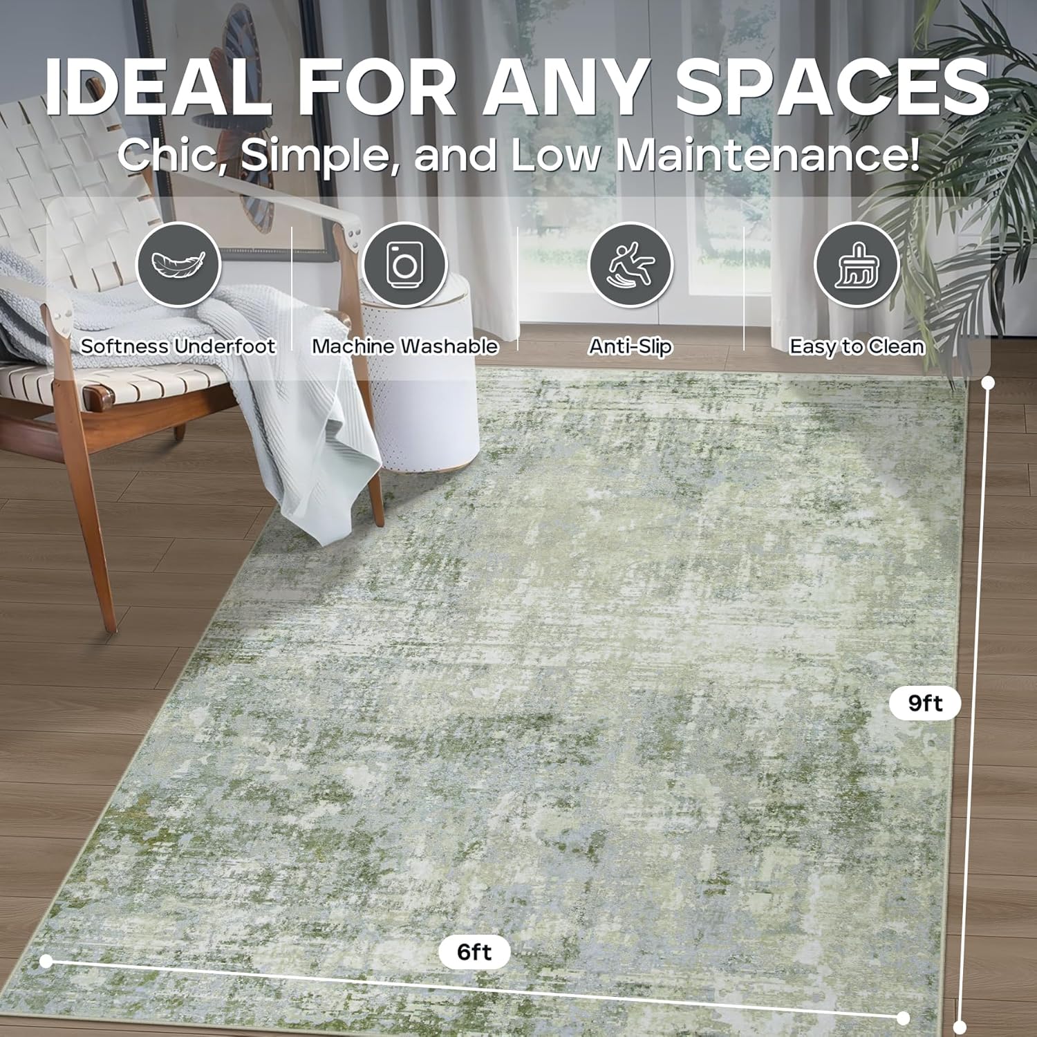 6x9 Area Rugs for Living Room Rug Washable: Modern Rug for Dining Room Bedroom Carpet Non Slip Low Pile 6 by 9 Indoor Abstract Nursery Home Office Green