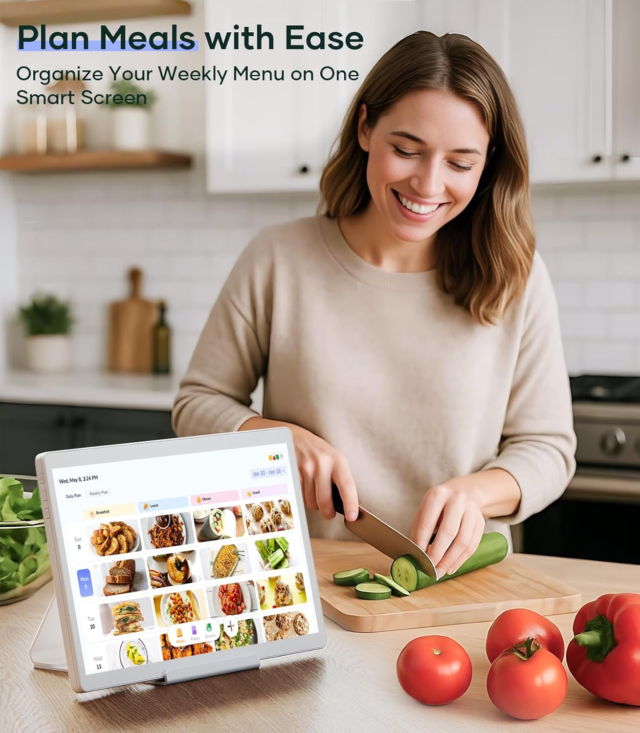 - Meal Planning with Ease:Easily schedule meals in advance,upload your own custom recipes, and auto-generate shopping lists,tailored to your meal plan. Our smart calendar digital wall touch screen can save you time and reduce stress in the kitchen.