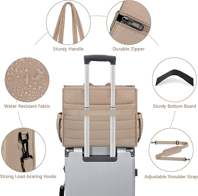 - Best choice tote diaper bag: This lightweight, stylish baby bags is every mom's perfect companion. Designed for versatility, it functions as a diaper bag, maternity bag, hospital bag, weekender bag, travel bag, gym bag, puffer tote bag, laptop tote, and work bag. Ideal for various occasions use, such as work, travel, shopping, picnics, office and more. A must-have diaper bag for pregnancy, combining fashion and functionality for both moms and babies.
