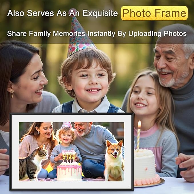 - ❹Double Duty as a Digital Photo Frame, when not in use, this portable digital calendar transforms into a stunning photo frame! Share family memories instantly by uploading photos, making it a heartfelt gift for loved ones and a beautiful addition to any home.