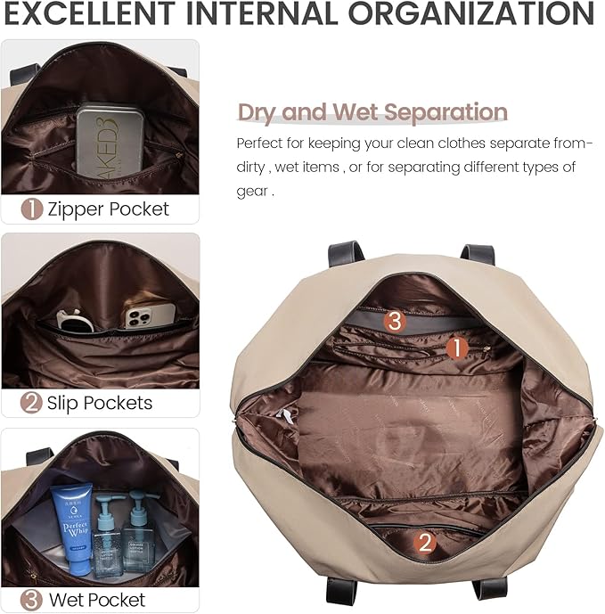 - 【DRY WET SEPARATED GYM BAG】When you're at the beach, swimming or exercising, separate high-density waterproof material pockets help you separate dry and wet items. And large shoe compartment to keep inside organized.