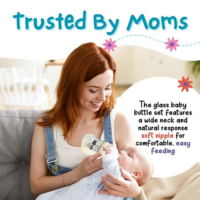 - PURE FEEDING WITH SAFE GLASS MATERIAL Crafted from durable BPA free glass our baby bottles deliver a pure feeding experience for newborns and infants. Unlike plastic alternatives they preserve taste and resist stains. Perfect for baby essentials sets these 3oz and 6oz bottles suit breast milk or formula. Their wide neck supports easy filling and reduces mess. Loved by moms seeking natural bottle-feeding for babies from day one of life.