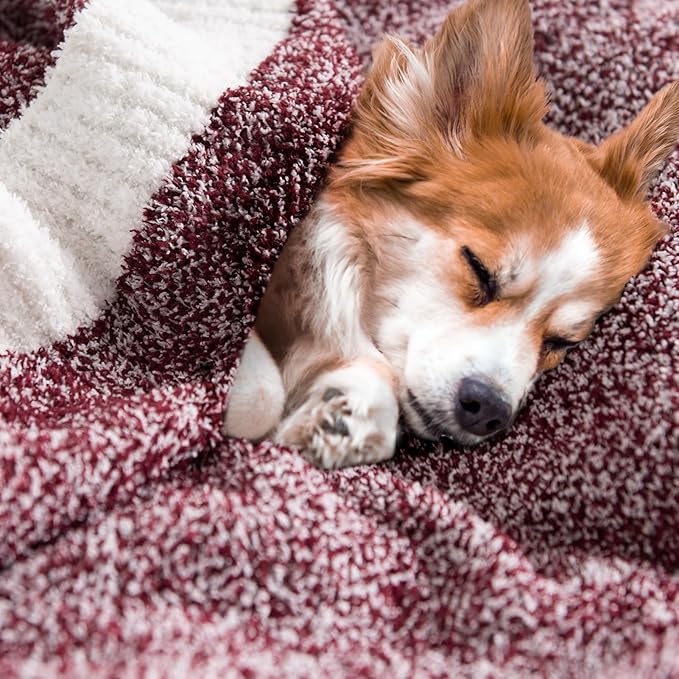 NEXHOME PRO Soft Twin Blankets for Couch, Reversible Warm Blankets Cozy Knit Blanket for Women, Fuzzy Plush Lightweight Throws for Sofa, Bed, Picnic, Wine 60 x 80 inches