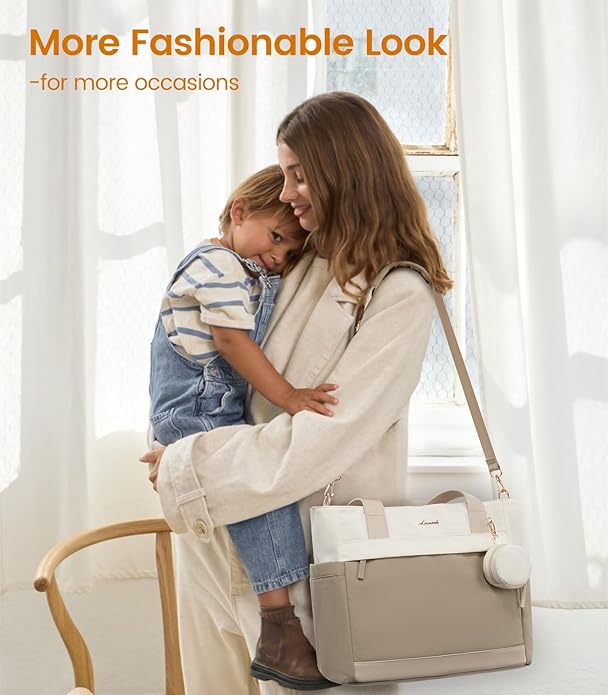 - Stylish & Travel Design: Who says tote diaper bags can't be stylish? This versatile design transitions effortlessly from daily care of baby to enjoying a coffee date. The luggage strap on the back of the bag lets you slip it over your suitcase handle - airport meltdowns, meet your match. oying a coffee date. The luggage strap on the back of the bag lets you slip it over your suitcase handle - airport meltdowns, meet your match.