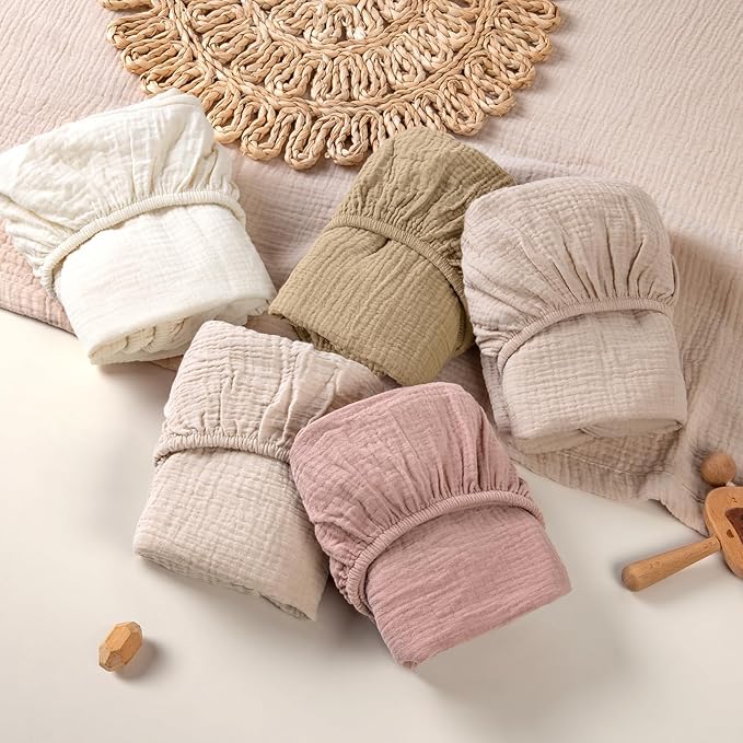 - Premium Soft Material: The bassinet sheets woven from 100% natural muslin cotton. Tender, breathable softer muslin fabric providing a gentle touch on the baby's delicate skin, and promoting a cozy and peaceful environment.