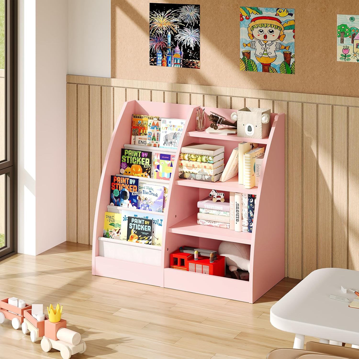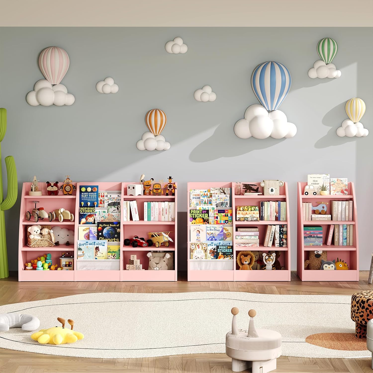 • Book Shelf For Kids Rooms: Spark your child’s love for reading with FFBCFDK kids bookcase. This kids bookshelf features four deep cotton linen sling pockets for displaying books cover-forward, plus ample storage for toys, trucks, plush animals, dolls, and art supplies