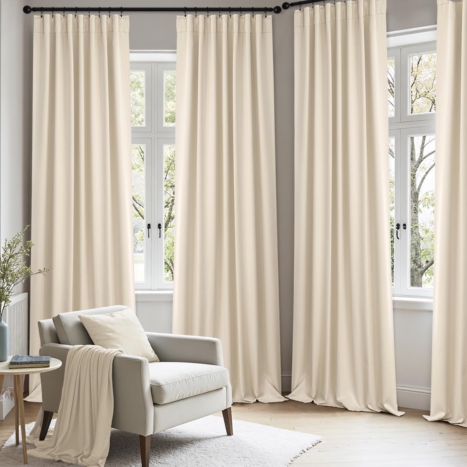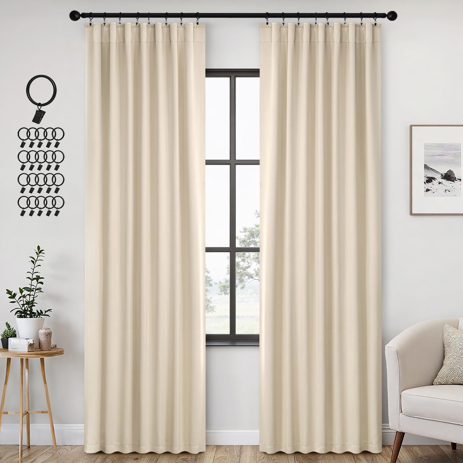 ANRODUO Back Tab Blackout Curtains for Bedroom Living Room, Rod Pocket Pinch Pleated Thermal Insulated Room Darkening Curtains 84 Inches Long 2 Panels, Cream Beige, 42 x 84 Inch