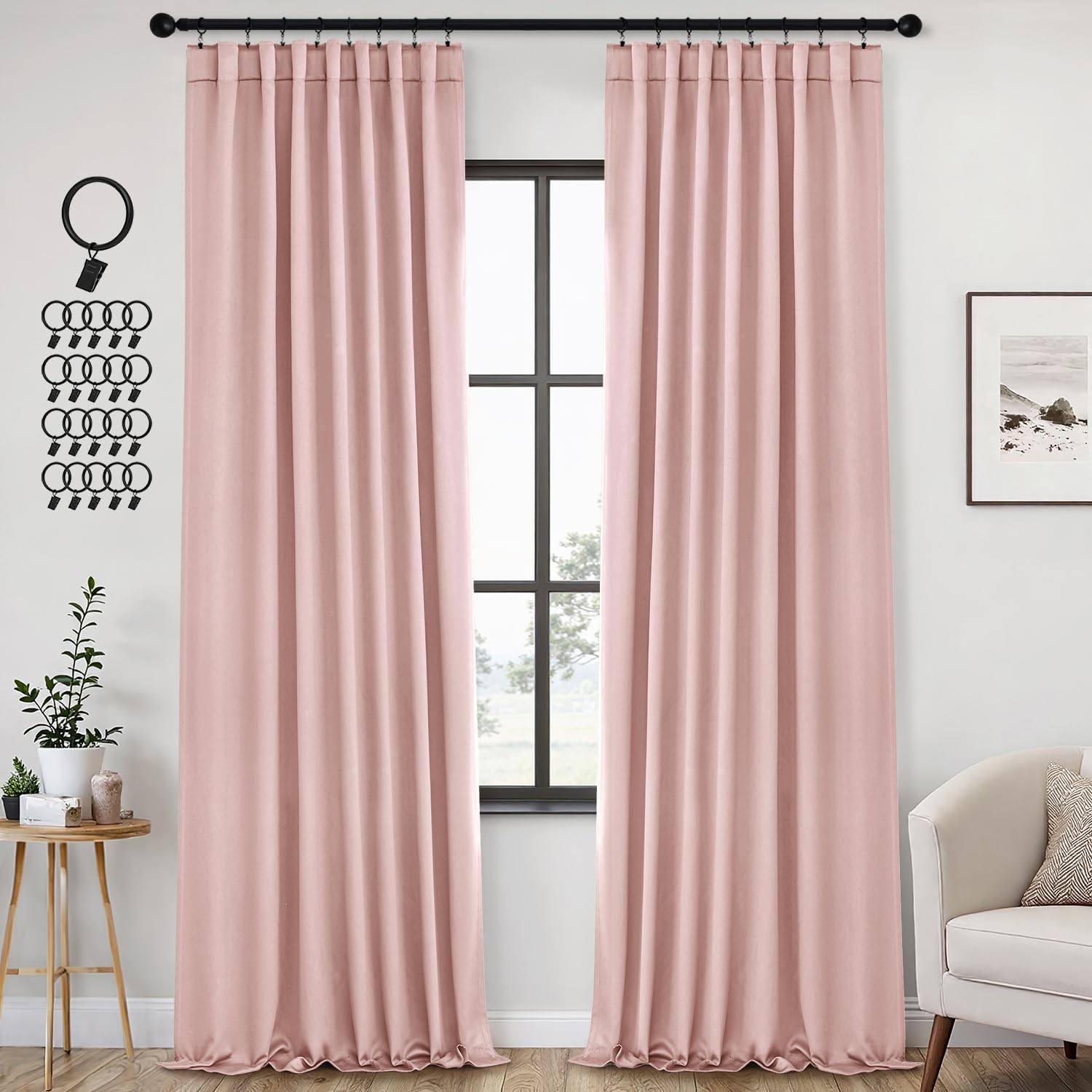 ANRODUO Light Pink Blackout Curtains for Girls Bedroom Living Room 96 Inches Long 2 Panels, Back Tab Rod Pocket Pinch Pleated Thermal Insulated Room Darkening Curtains, 42 x 96 Inch