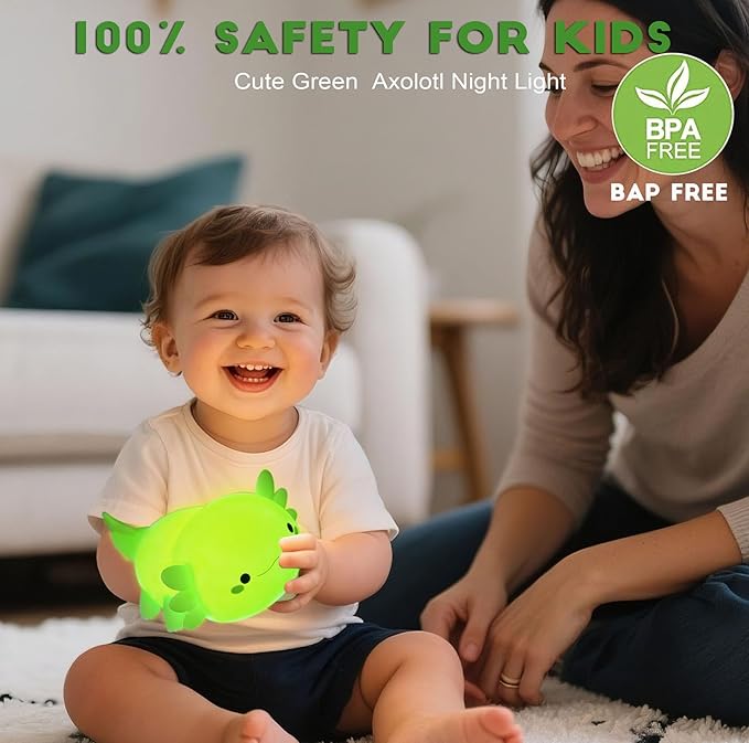 • Safe and BPA Free:Cute Axolotl lamp,Using food grade safe materials,BPA free, safe for kids,soft silicone material Soft lighting,soft touch,that can be kneaded freely,axolotl night light is a cute bedtime toy for kids to relieve stress,It is also a cute kids room decor