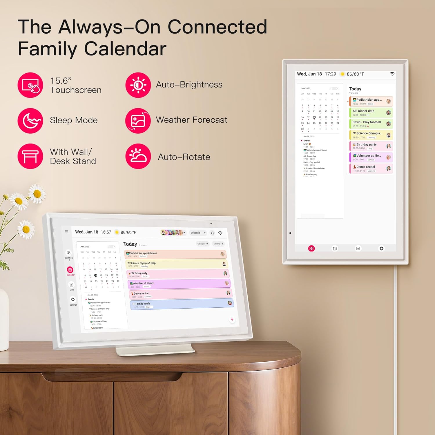 - 【Sync Calendar like Google, Apple, Outlook, and More】 Enjoy Auto-sync with Google Calendar (changes update both ways), iCloud & Outlook, Cozi, Yahoo, and SnapTeam (read-only sync). Easily manage and update schedules remotely — anytime, anywhere. (Go to App → User → Sync this digital Calendar and follow the prompts)