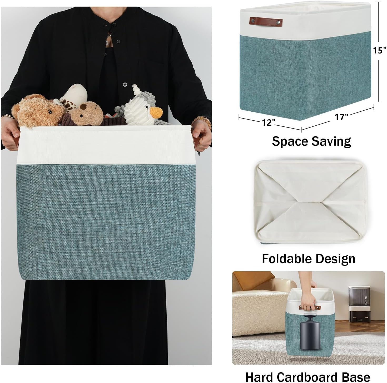 DULLEMELO Extra Large Storage Baskets,Fabric Storage Bins with Handles for Home,Office,Closet,Clothes,Foldable Storage Bins for Closet, White&Dark Green 2-Pack