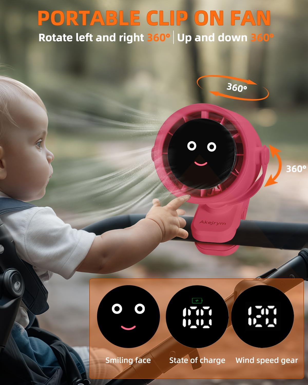 - 【360° Rotation and 5 Speeds】Akejrym Baby Stroller fan head can be adjusted vertically and horizontally in any direction, providing cool airflow from all directions to keep your baby comfortable in hot weather;It has 5 different speeds for different purposes, which is more comfortable for babies.