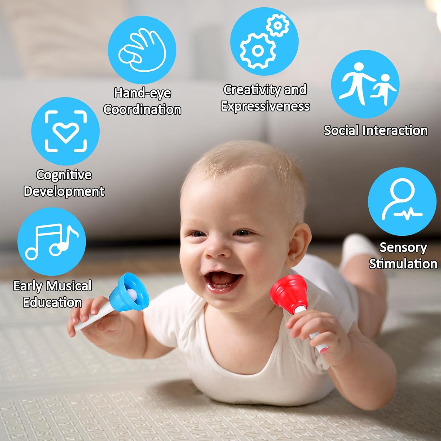 - Complete 8-Note Musical Range: Each handbell in this musical handbells set produces clear C-D-E-F-G-A-B-C notes with color-coded bands, simplifying music education for beginners. Ideal for teaching, rhythm, and ensemble play.