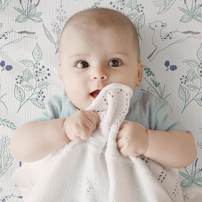 Muslin Bassinet Fitted Sheets, 2 Pack for Baby Boy and Girl, Soft Breathable Baby Pad/Mattress Sheet, Fit for Hourglass Oval and Rectangle Bassinet Mattress (Blue Deer)