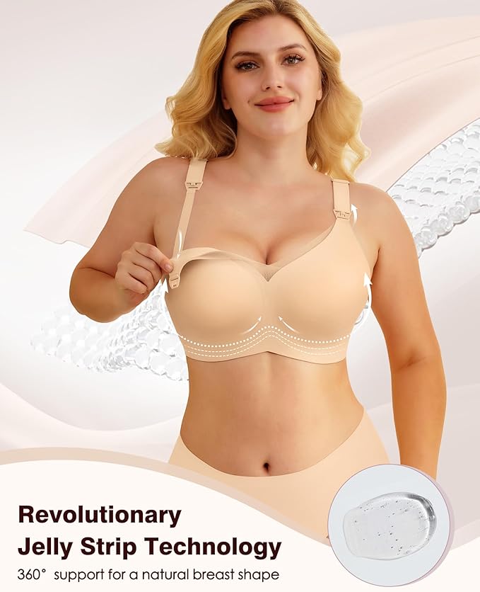 - Super Soft & OEKO-TEX Certified Comfort:Experience cloud-like softness with our seamless wire-free nursing bra, made from OEKO-TEX certified fabric (55% Nylon, 45% Spandex). Gentle on sensitive skin and completely free from harmful chemicals, it feels like a second skin — perfect for maternity, sleeping, or everyday wear.
