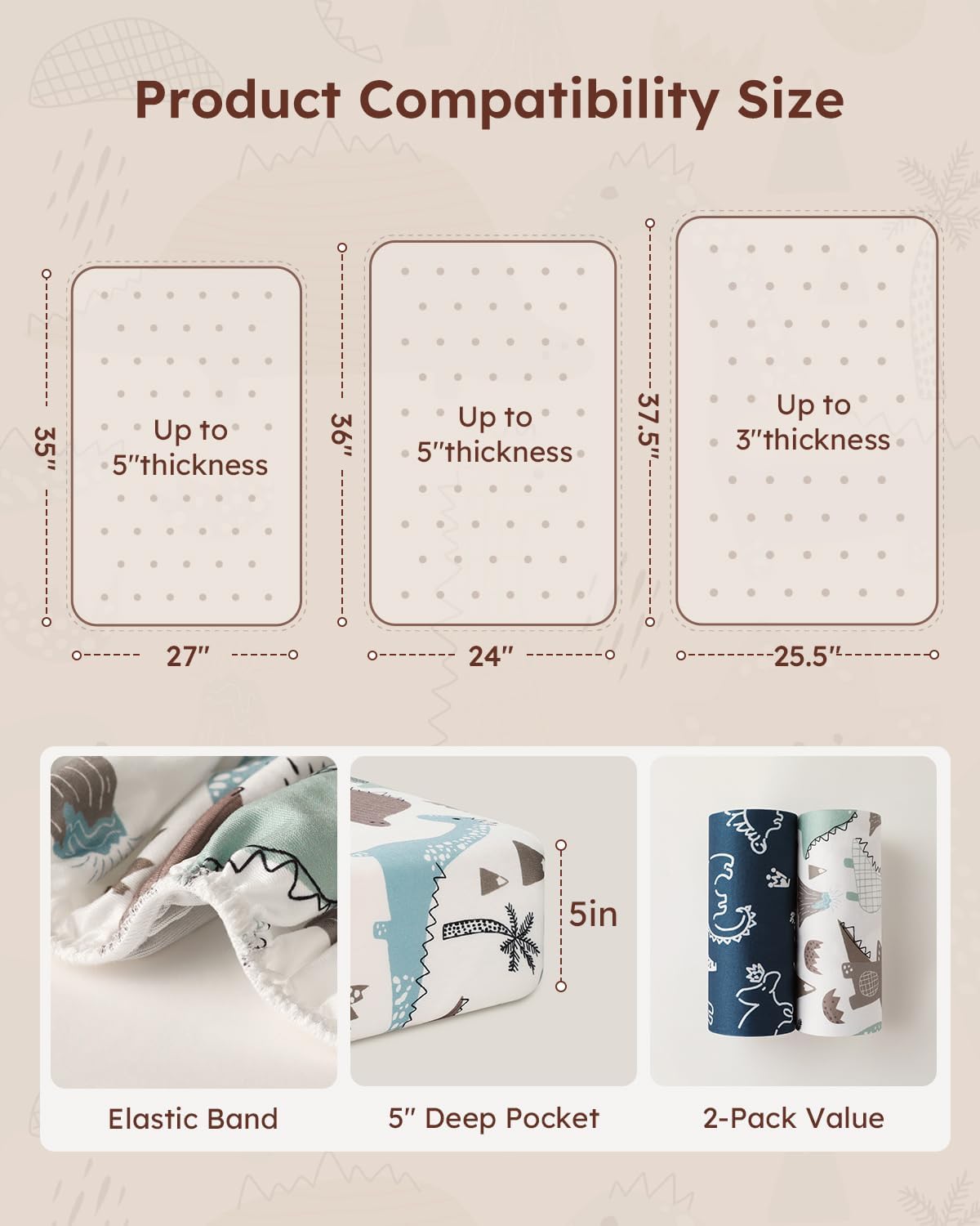 Yoofoss Baby Pack and Play Sheets 2 Pack for Boys and Girls - 38x26 Mini Crib Sheets Fitted Neutral Compatible with Graco Pack n Play Mattress,Ultra Soft Breathable Microfiber Dark Blue Dinosaurs