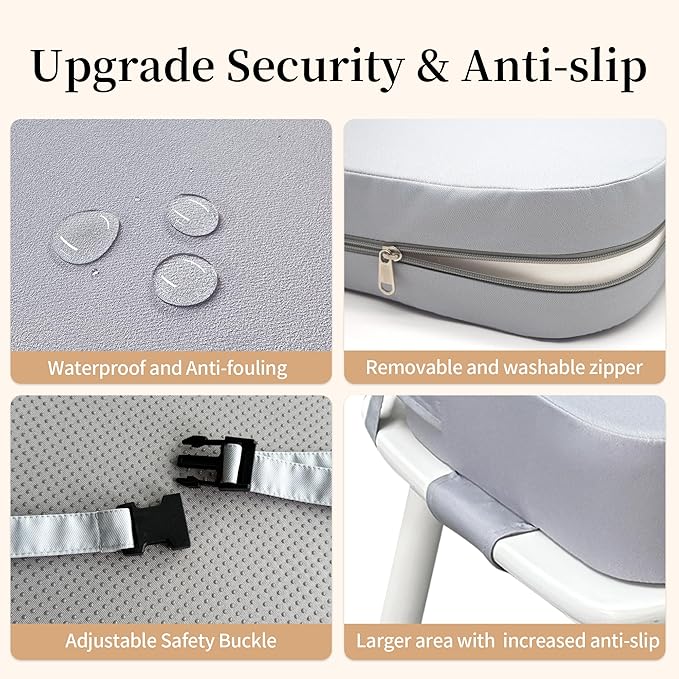- Dual Adjustable Straps:Secures seat to chair from both back and base; Prevents shifting during meals; Quick-release buckles allow fast setup and removal