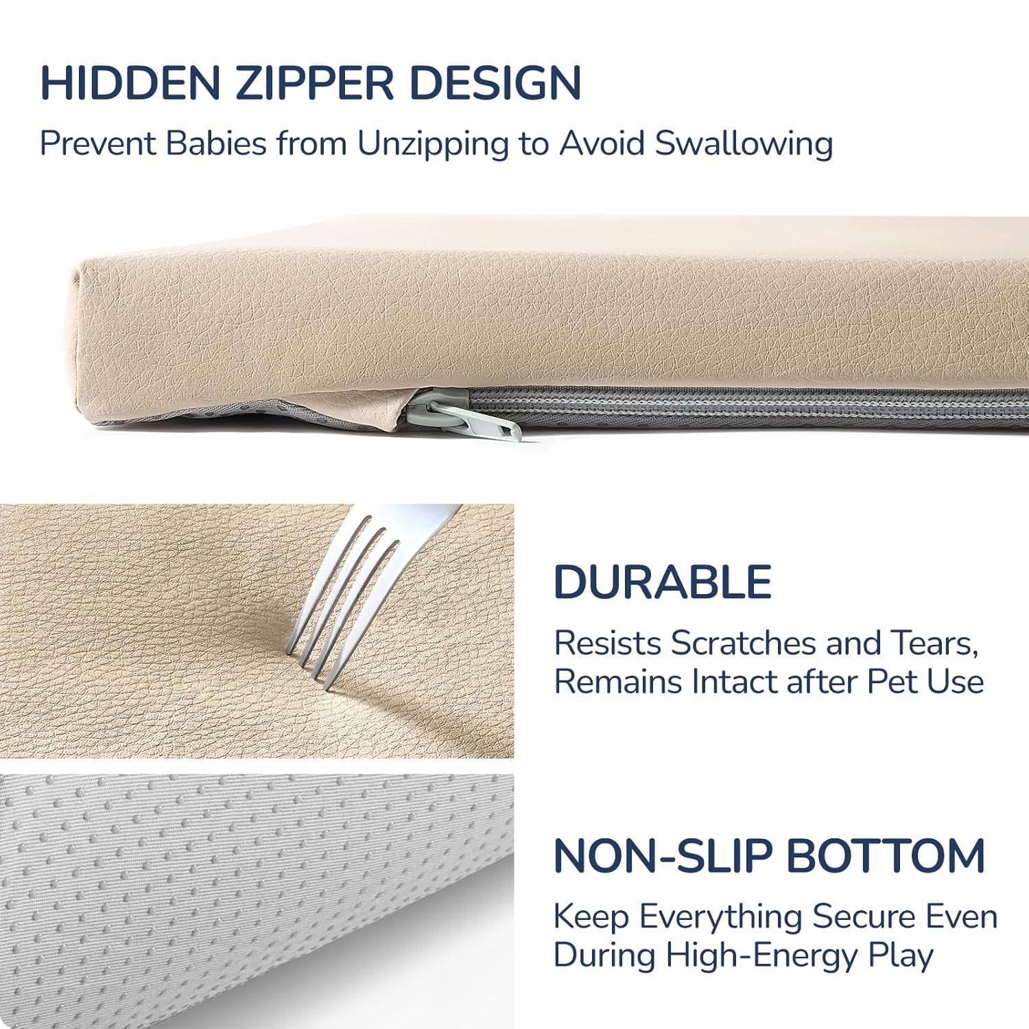 Baby Play Mat for Floor,1.3'' Thick Memory Foam Play Mat,Soft PU Leather Muscle Mat Rug,Cushioned & Waterproof Playpen Mats,Non Slip Crawling Padded Tummy Time Mat for Toddlers,Infants,Kids