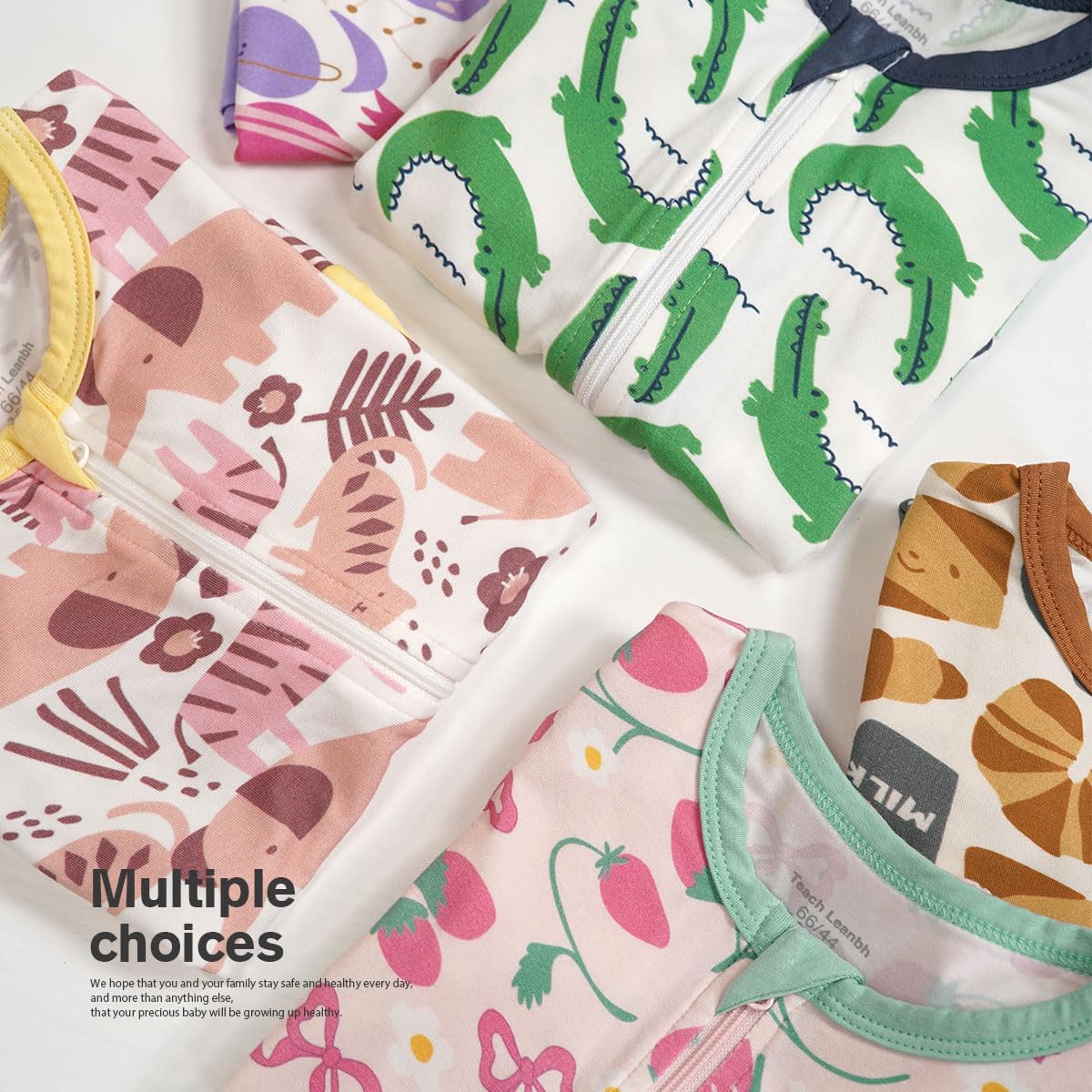 Teach Leanbh Toddler Unisex Baby Bamboo Viscose Pajamas 2 Way Zipper Short Sleeve Footless Romper Jumpsuit Sleep and Play