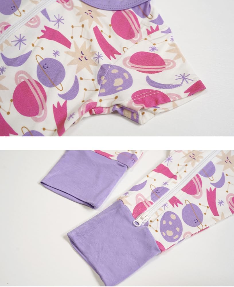 Teach Leanbh Toddler Unisex Baby Bamboo Viscose Pajamas 2 Way Zipper Short Sleeve Footless Romper Jumpsuit Sleep and Play
