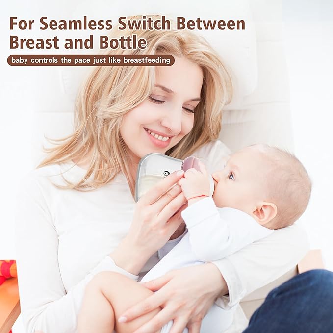 - Silicone Nipple: The nipple is made of food-grade silicone, which is super soft and allows the baby to suck naturally. There are air holes at the bottom of the nipple to balance the internal and external pressures, separate the milk from the air, and prevent the baby from inhaling too much air and causing colic and flatulence.