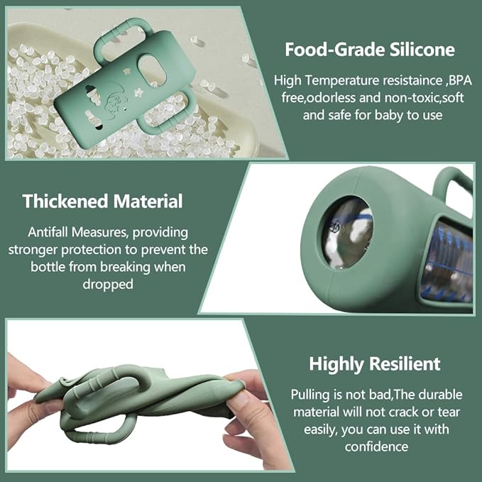 - 【Safety Material, Food-Grade Silicone】: Silicone baby bottle sleeves are made of food grade silicone,BPA free,odorless and non-toxic,Dishwasher safe, soft and safe, which is safe for baby girls to use. Anti-stick silicone material don't stick to the dust, hair, and etc, helpful for infant hygiene