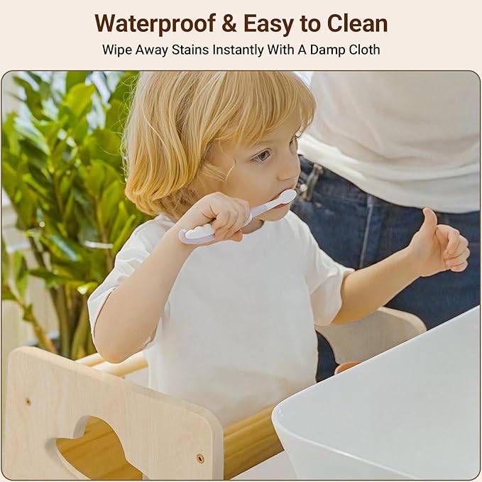 - Hands-Free Convenience & Safe Engagement: This stable learning stool frees up parents' hands by letting kids join kitchen activities instead of tugging at their parents' legs or constantly asking to be picked up. It also keeps them within sight at all times, ensuring their safety.