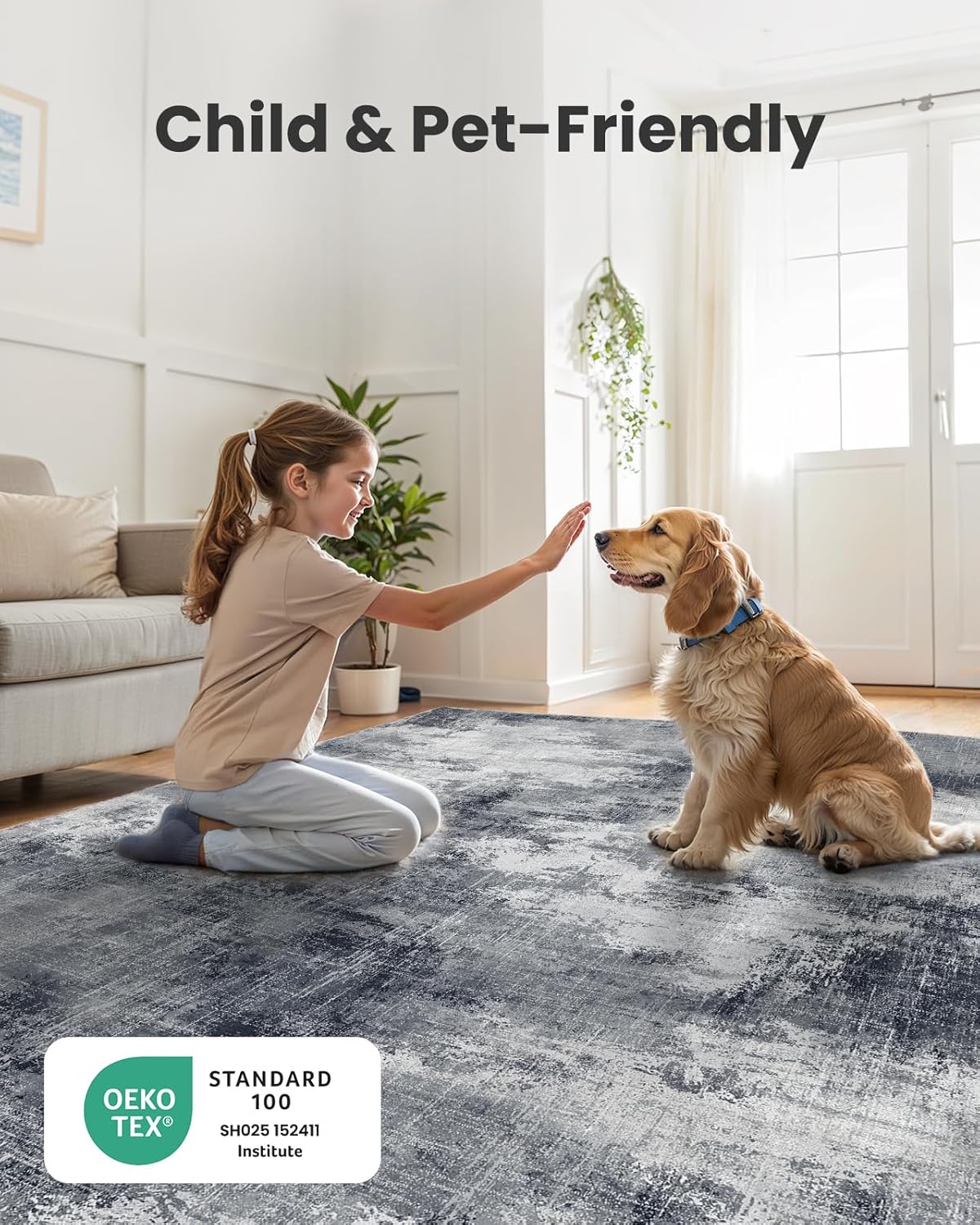 - 【OEKO-TEX Certified Quality】This washable area rug 6x9 is crafted from OEKO-TEX certified, skin-friendly materials, making it an ideal surface for children & pets. The soft feel provides a cozy barefoot experience all day long.