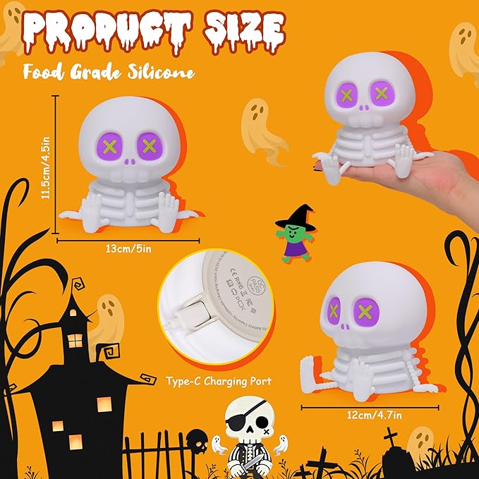 - Safe Sleeping Night Light: Unique skeleton shape nursery night light, made from super-soft, BPA-free silicone, it is completely safe for children to touch and squeeze, providing a comforting and tactile experience.