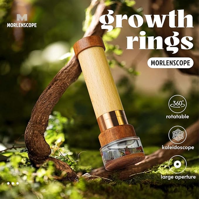 - Design:Rotate the core box,the seasons will regrow at your fingertips.Inspired by the "growth rings", we have incorporated the traces of time, the power of growth and the gifts of nature into adults kaleidoscope design. The material collision of wood and brass is not only the precipitation of time, but also the temperature of life - the wood grain carries the narrative of the annual rings, the brass tempered the texture of time, and the two are intertwined into a touching time poem.