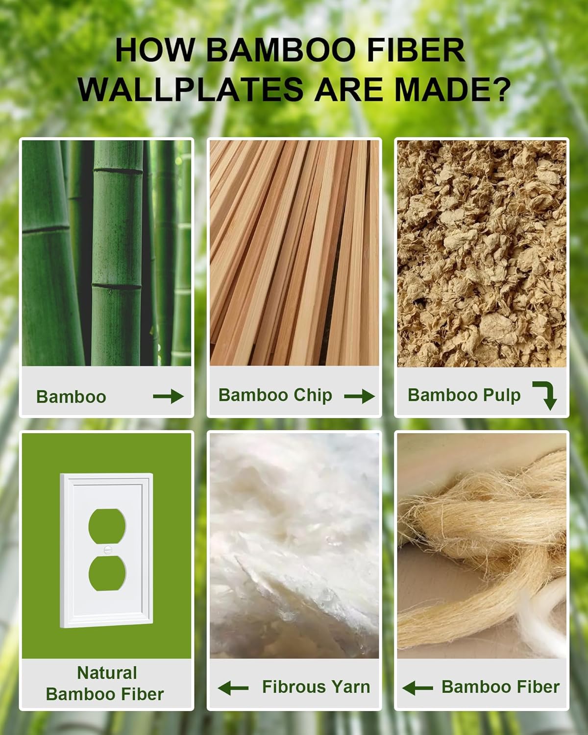 6-Pack Duplex Outlet Cover, Natural Bamboo Fiber Switch Plates and Outlet Covers, White Decorative Wall Plates for Electrical Outlets, 1 Gang Receptacle Cover, Corrosion Resistant