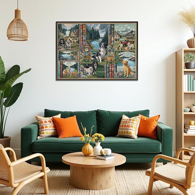Jigsaw Puzzles for Adults 1000 Pieces, Rocorose Dogs Bookshelf Nature Landscape Puzzle Difficult Animal Jigsaw Puzzles for Family Challenging for Game Night Puzzle Book Home Decoration