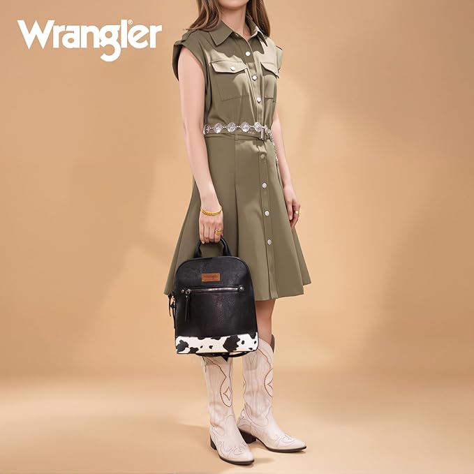 - Wrangler backpack is made of PU leather and has a simple design, this womens backpack is suitable for travel work.
