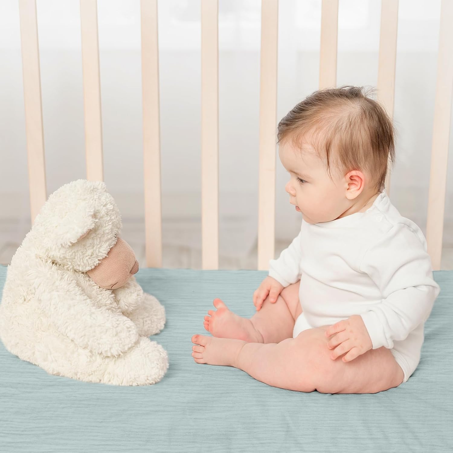 - MUSLIN COTTON: Are you looking for the perfect baby bed sheets? Look no further than our Gllquen Baby pack and play sheets! Made with 100% muslin cotton, these baby sheets have excellent air permeability and moisture-absorbing properties that keep your baby's skin dry and comfy, providing comfortable care and a good night's sleep. Rest assured, every product meets the OEKO-TEX Standard 100 and is safe for babies