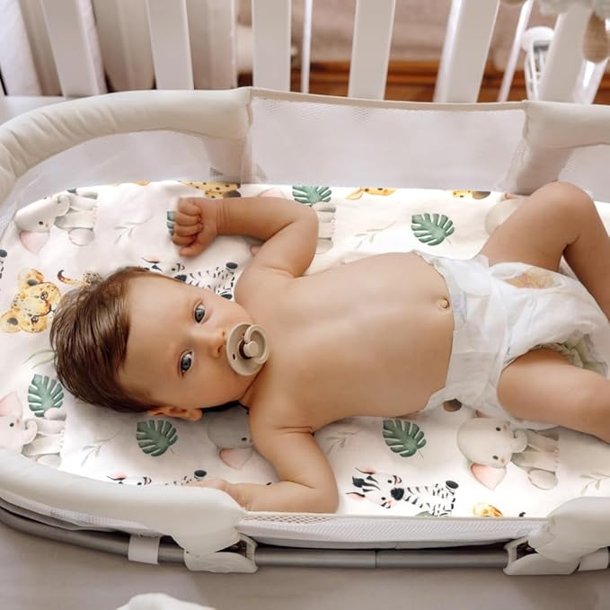 4 Pack Safari Jungle Animals Neutral Unisex Fitted Nursery Baby Sheets Set Toddler Mattress Sheets for Baby Boys or Girls (Bassinet Sheets)