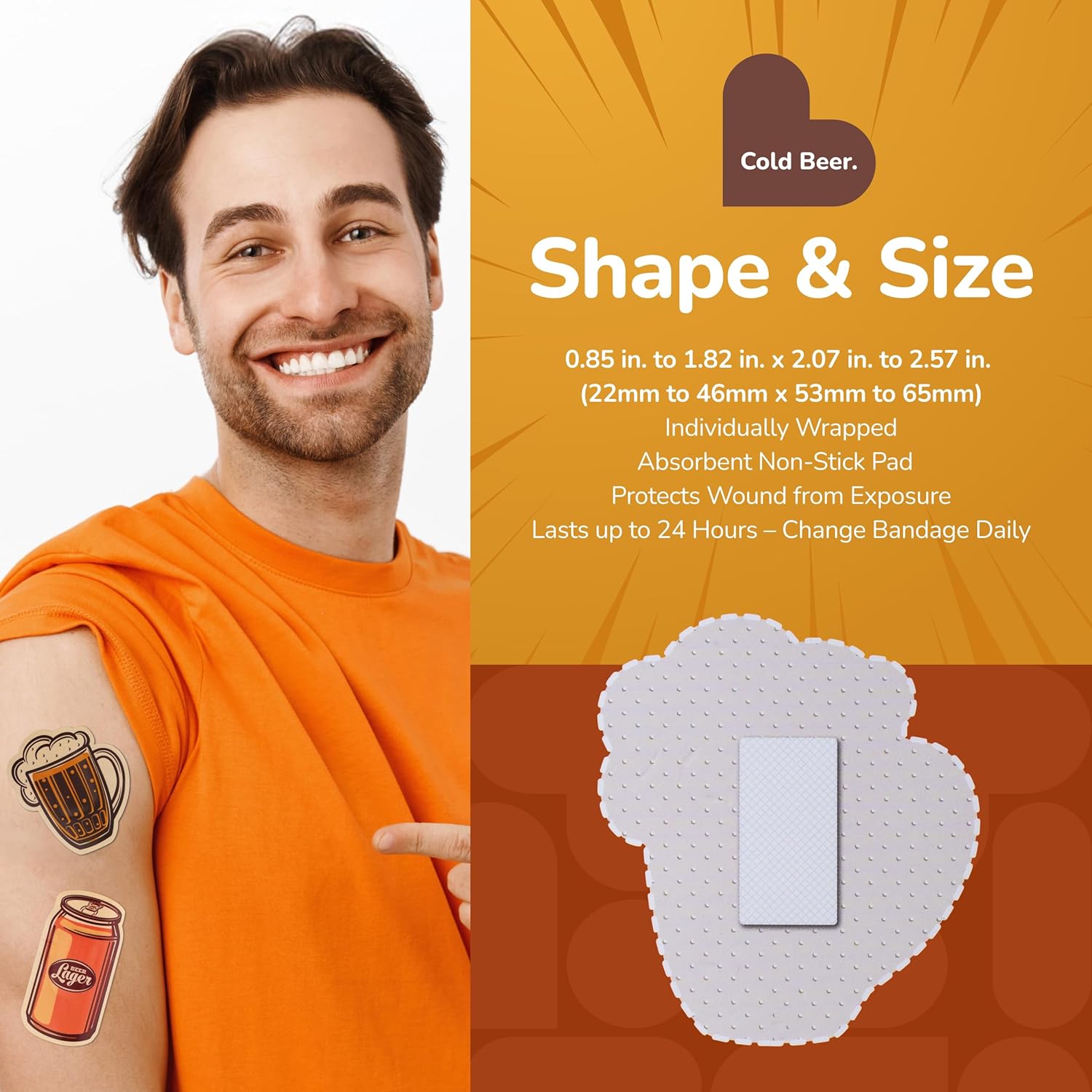 - EASY TO CARRY AND USE: These colorful Cold Beer healing bandages are easy to take with you for travel, and easy to store in a home first aid kit