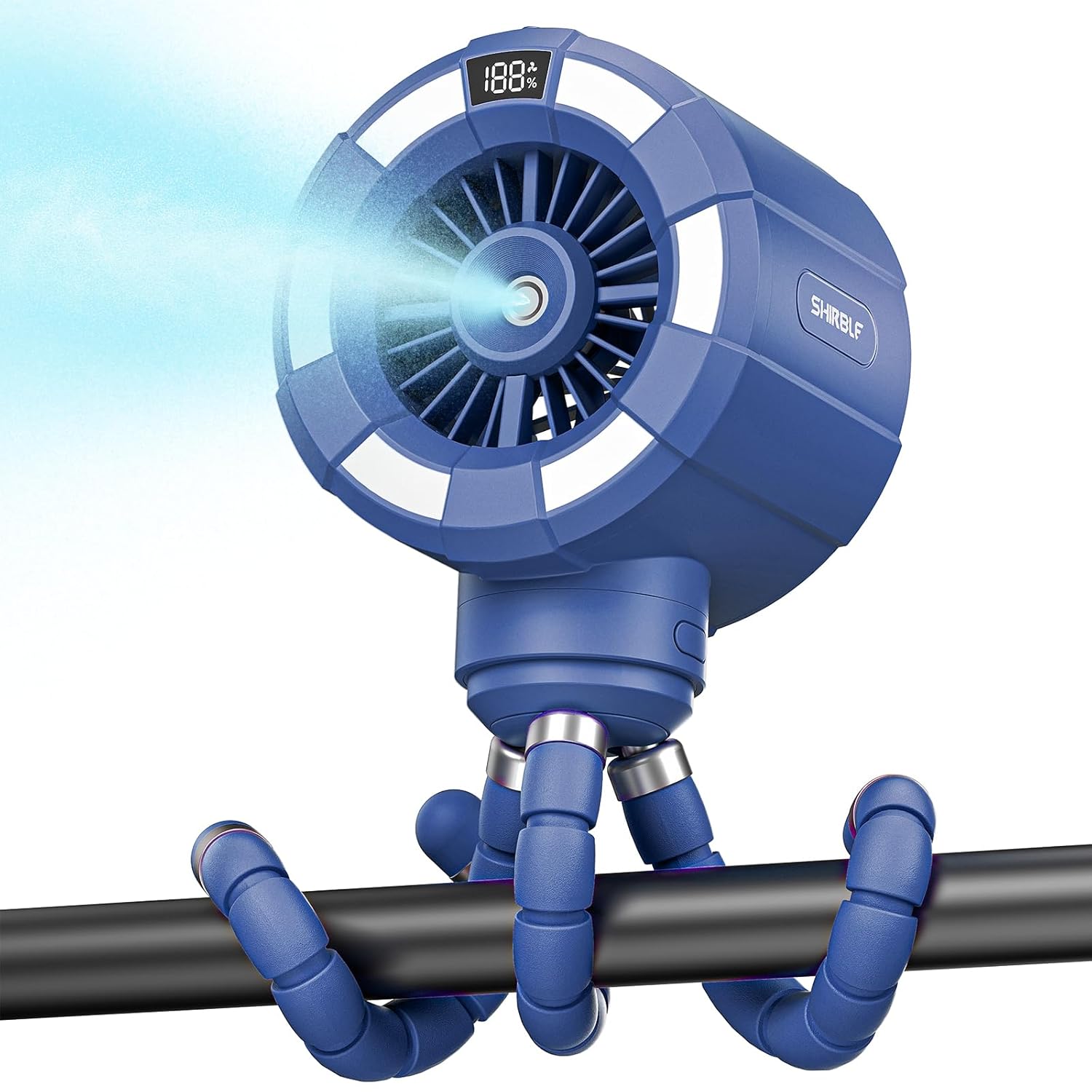 6000mAh Misting Fan for Stroller, 3 Speeds Portable Clip Fan with Intermittent/Continuous Spray, 14H Cooling, Detachable Mount, Timer & Night Light for Baby (100ML Water Tank)-Darblue