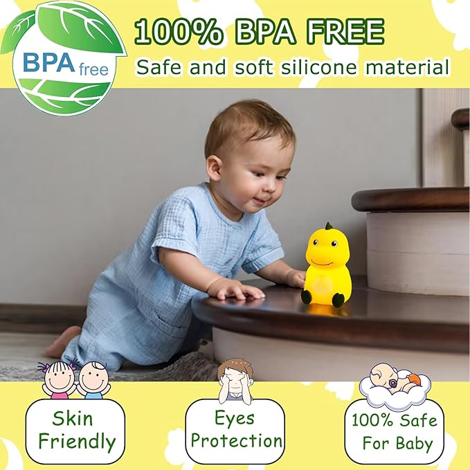- 🦕【16 COLORS+TAP CONTROL FUN NIGHT LIGHT FOR KIDS】Are yr kids afraid of the dark? Is getting yr kids to bed a battle every night?Cute night light for kids is yr little one bedtime buddy~ Simply press the on/off button again to access the 16 color breathe modes, baby night light for kids & kids night light for baby nursery that can soothe baby's emotions,brings kids sweet and warm sleep every night. Make kids fall in love with every moment before bedtime and return the romantic time of the night to u.Take toddler night light for kids lamp home!