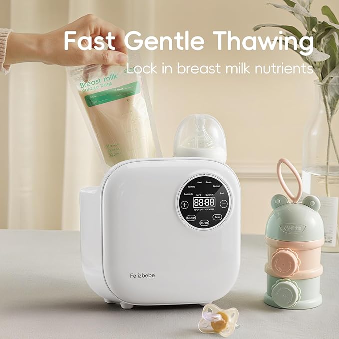 Baby Bottle Warmer, Felizbebe 10-in-1 Double Bottle Warmer for Breastmilk or Formula, Accurate Temperature Control, Timer, Sterili-zing, Defrost, Heat Food, Keep Warm, Breast Milk Warmer for Baby