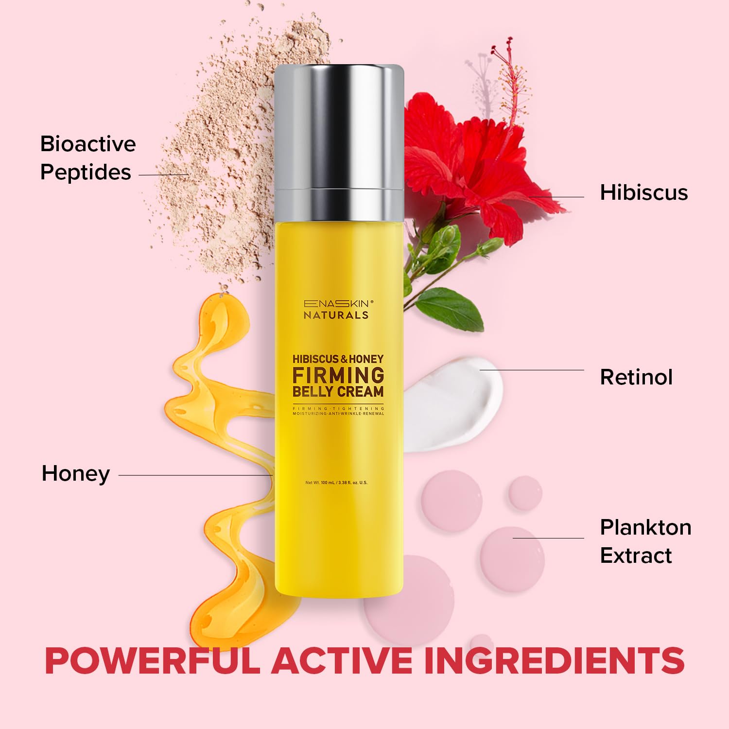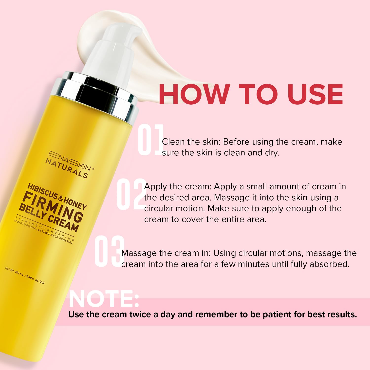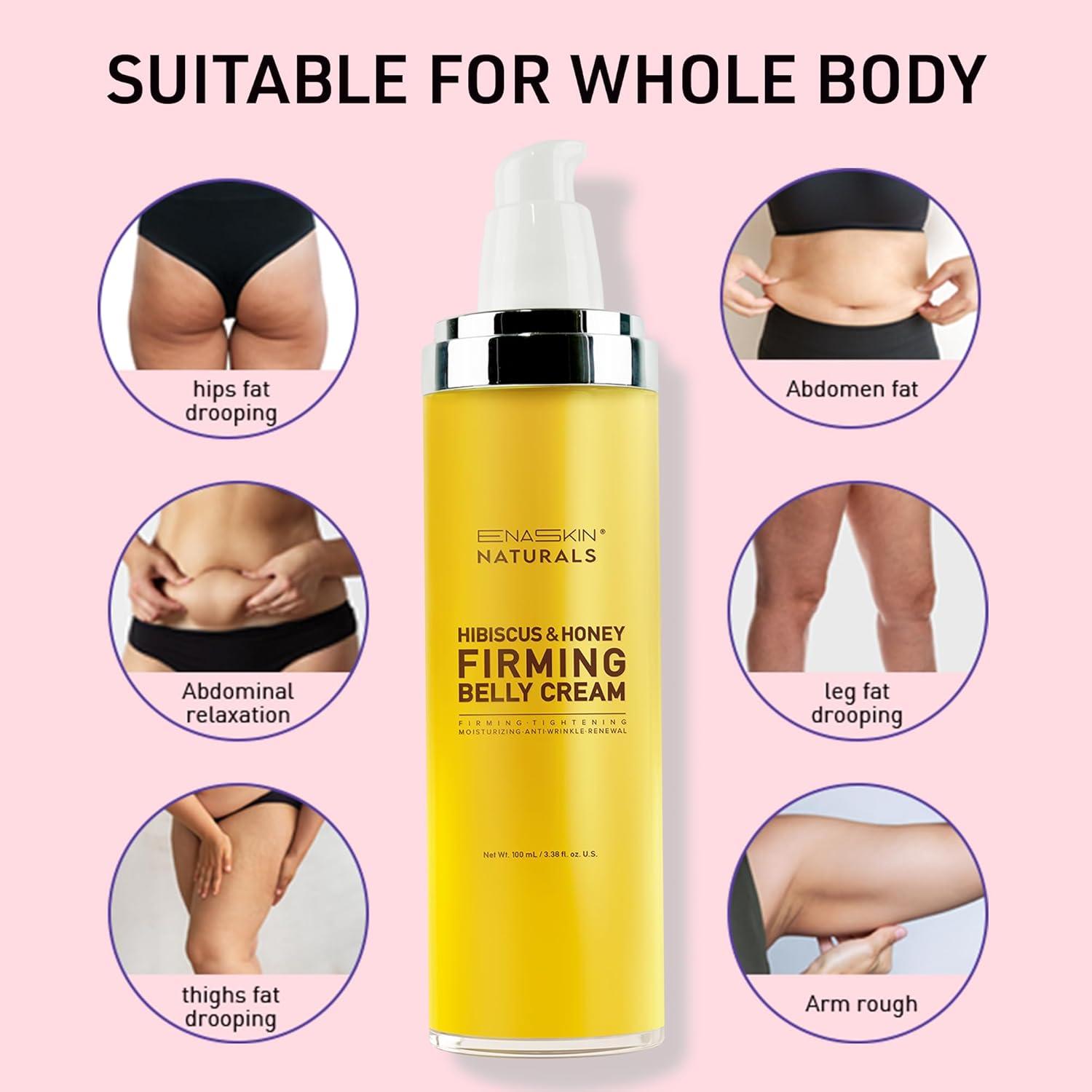 Enaskin Naturals Belly Firming & Skin Tightening Cream — Hibiscus and Honey Cellulite Lotion for Stomach, Thighs & Butt — Moisturizing & Lifting Body Lotion for Women, 100ML